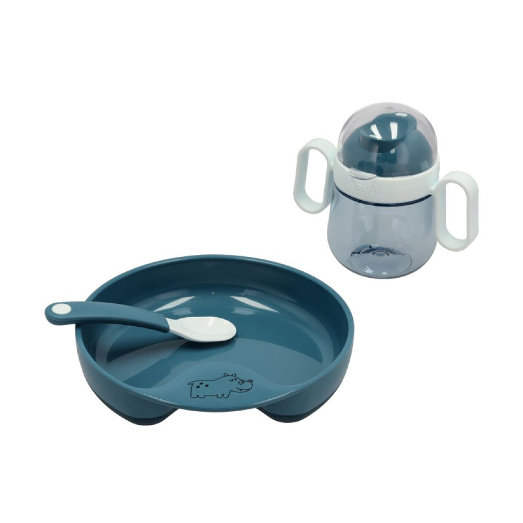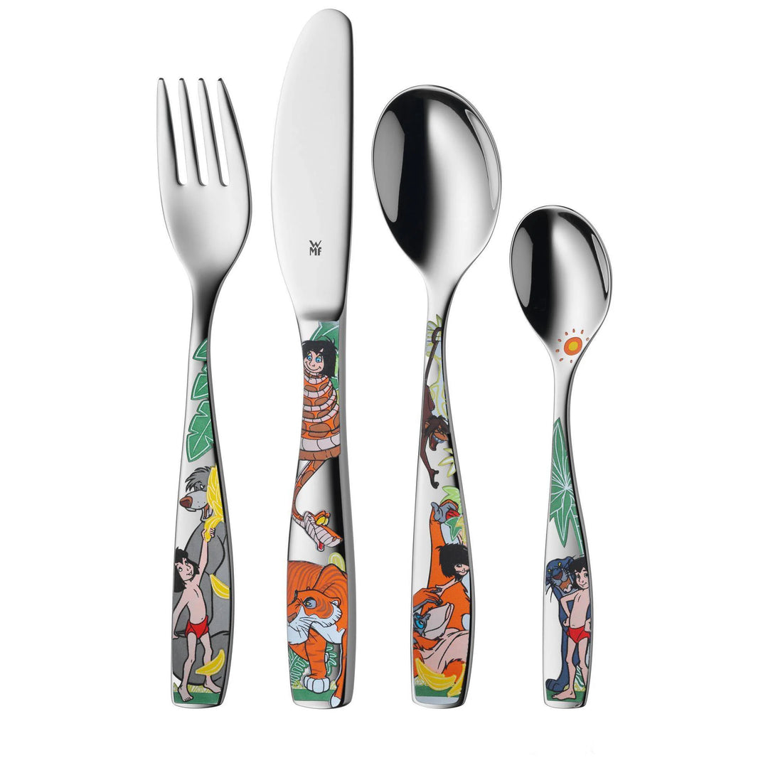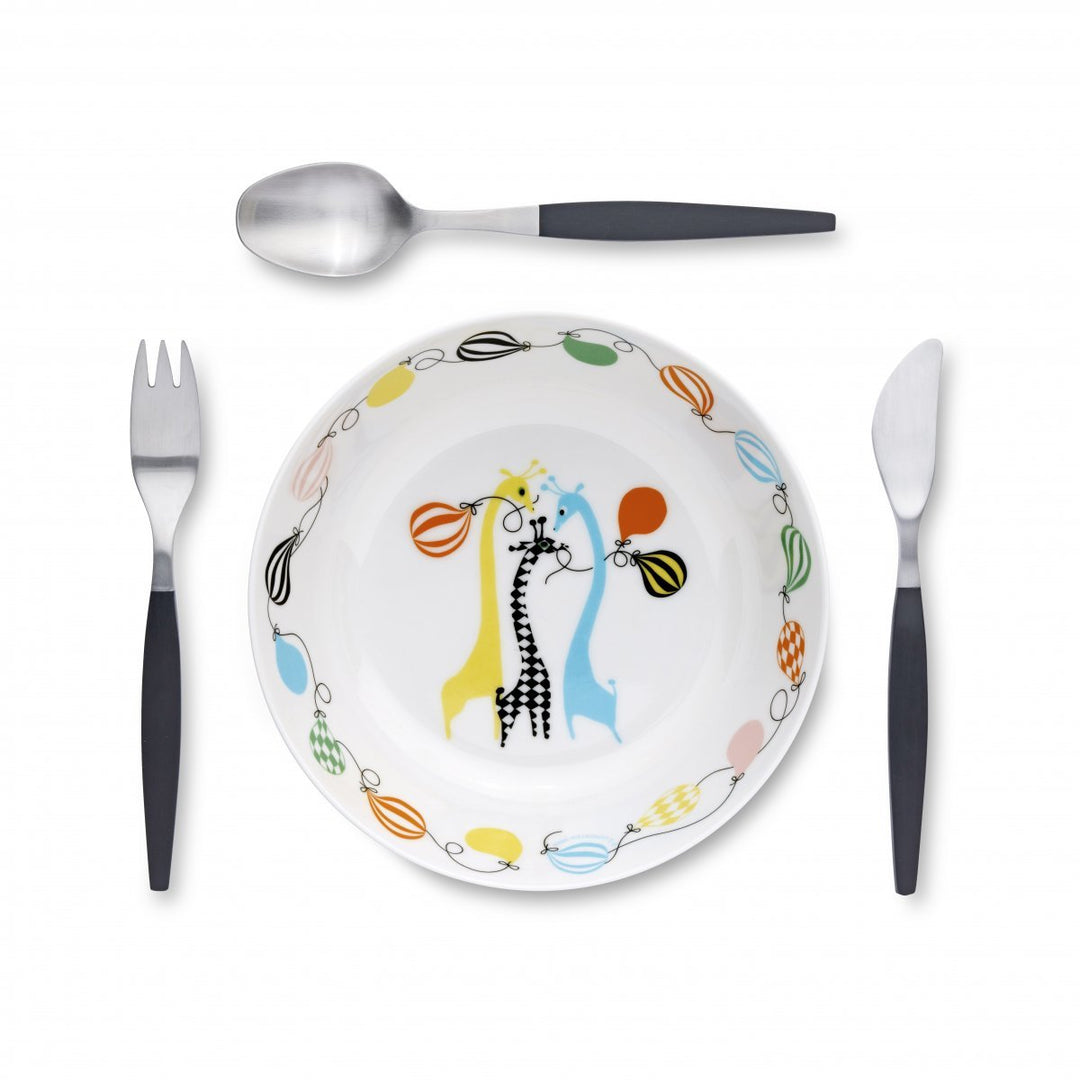 Børneservice og bestik i matchende design gør måltidet til en sammenhængende fornøjelse. De koordinerede sæt med tallerken, skål og bestik skaber en helhed, der gør det sjovt for børn at spise.