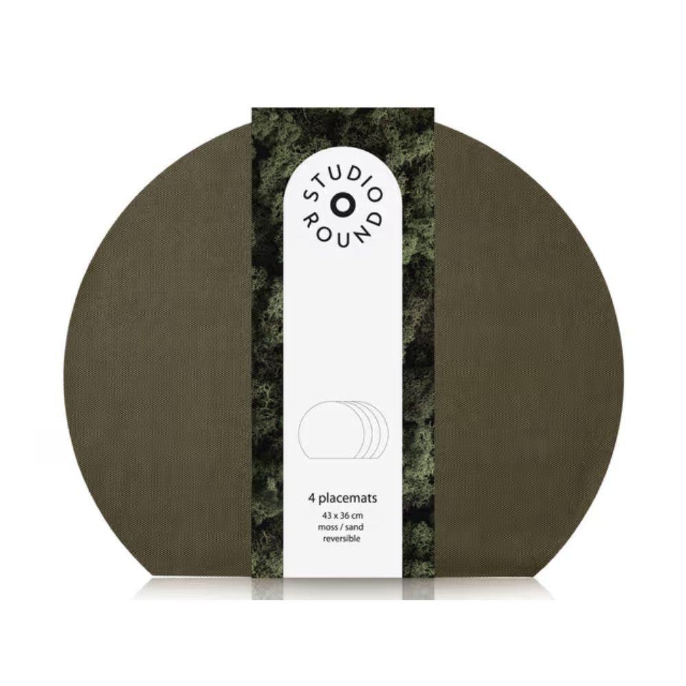 Studio Round - Dækkeservietter vendbare 4 stk. 43 x 36 cm Moss/Sand