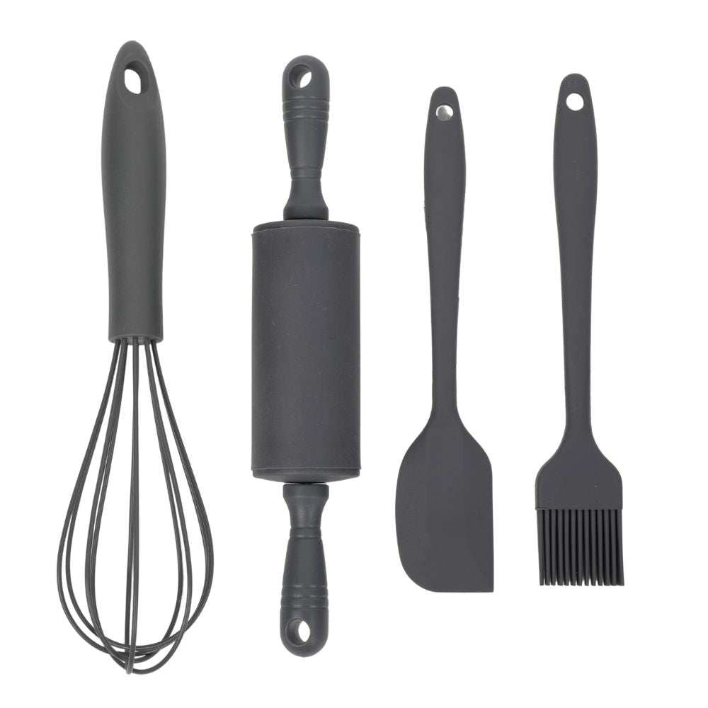 Et praktisk og sjovt bagesæt til børn, der elsker at hjælpe til i køkkenet. Sættet består af fire dele – piskeris, kagerulle, bagepensel og røreske – alt sammen i slidstærk silikone med behagelige håndtag. Ideelt til leg og læring, når de små vil bage sammen med familien.