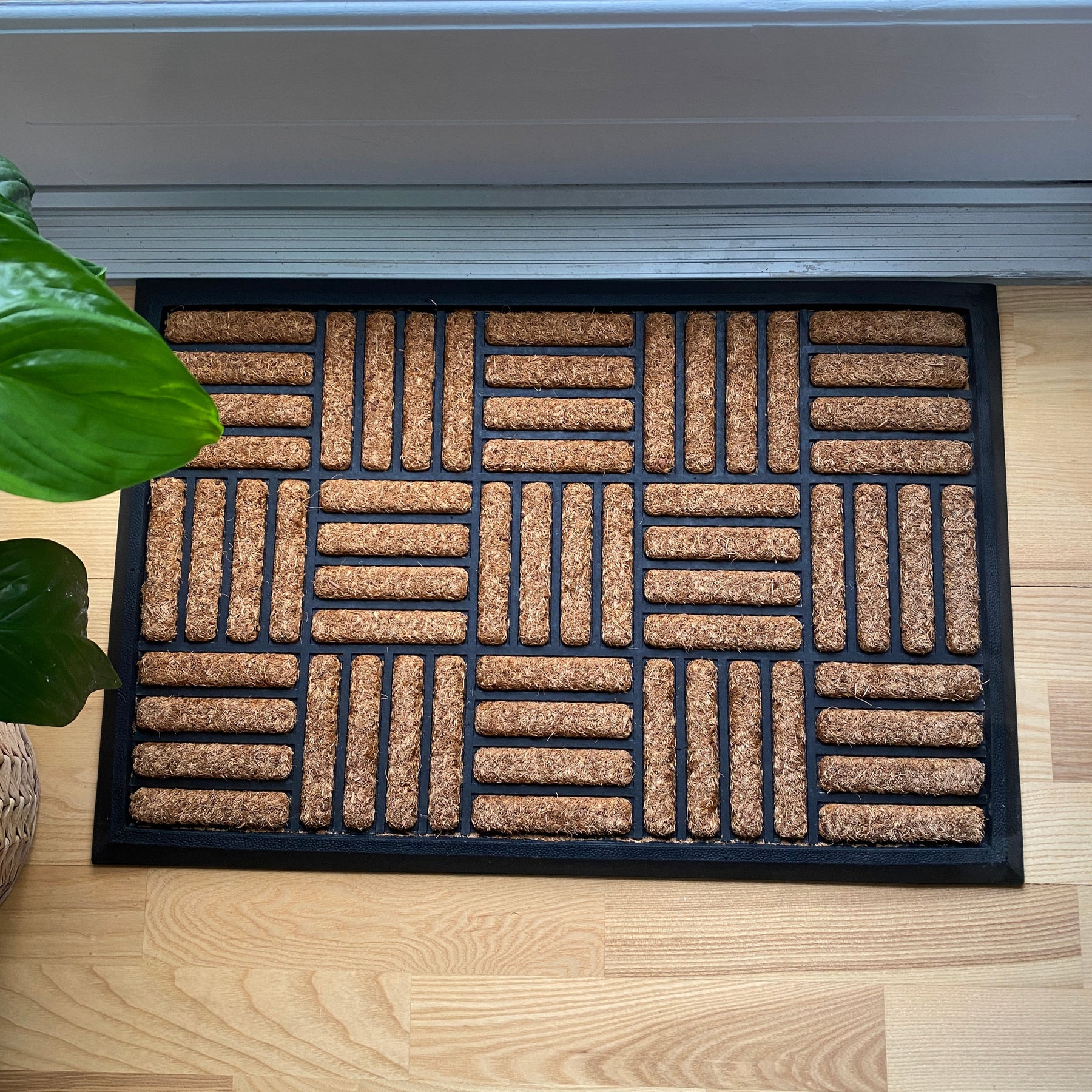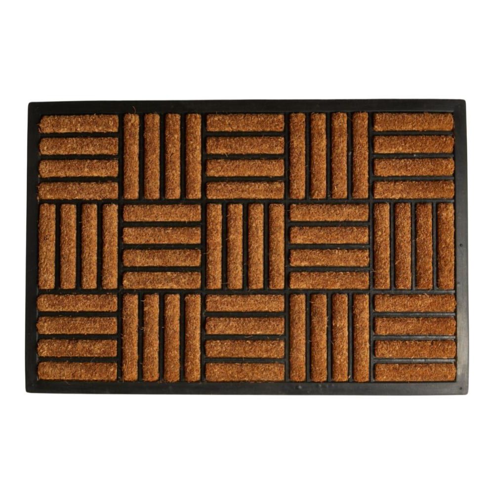 Denne dørmåtte med firkantet mønster kombinerer funktionalitet og stil. Gummibagsiden sikrer, at måtten ligger stabilt og ikke glider, mens det dekorative mønster giver et moderne udtryk i entréen. Ideel til at fange snavs og fugt fra sko, så gulvet holdes rent.