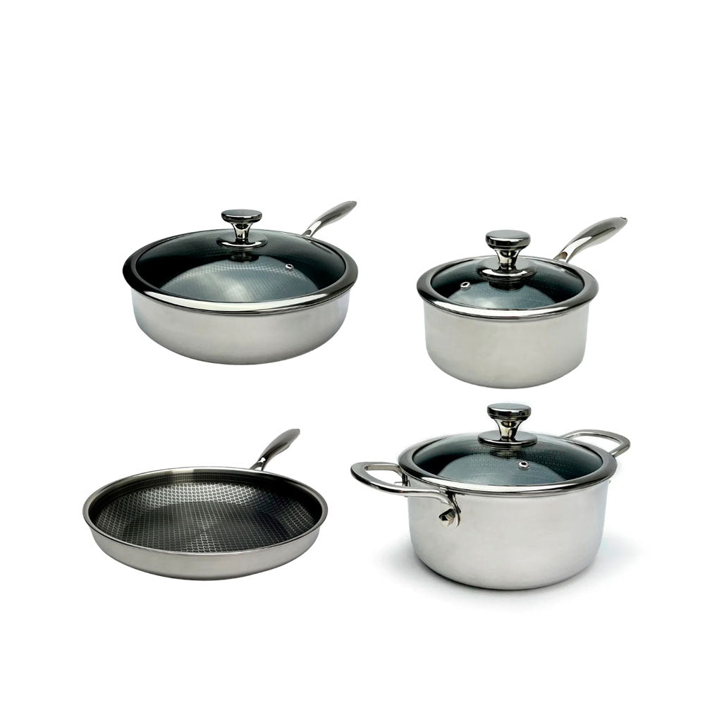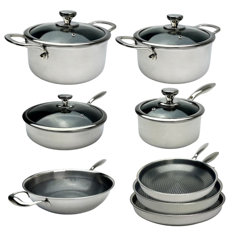 Grydesæt med låg er både praktiske og pæne i køkkenet. De er lavet til at gøre madlavningen bedre og holde maden varm. Låget er vigtigt, fordi det hjælper med at fordele varmen jævnt og holde på fugten, når du laver mad. Det giver velsmagende mad og gør det nemmere at styre madlavningen.