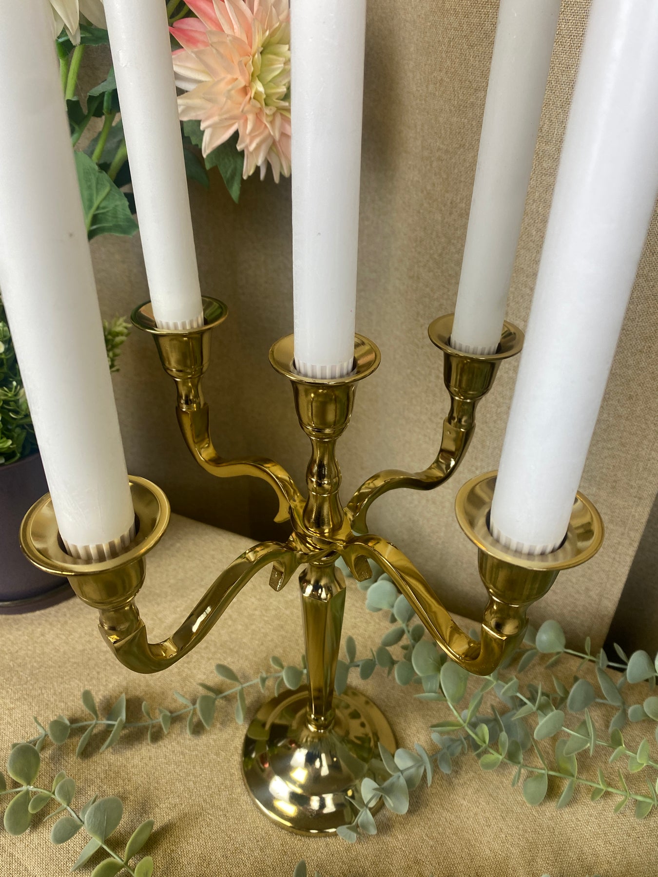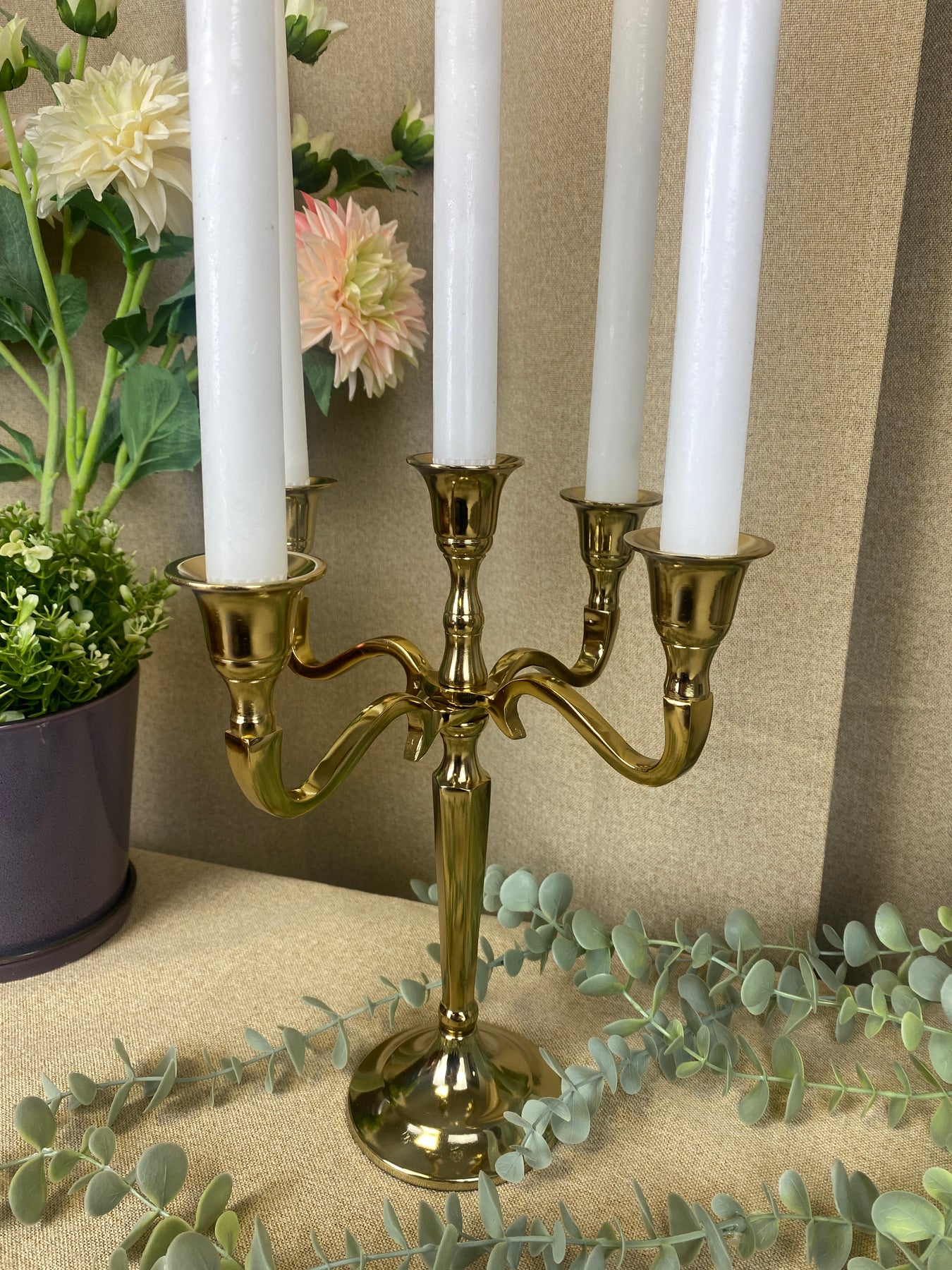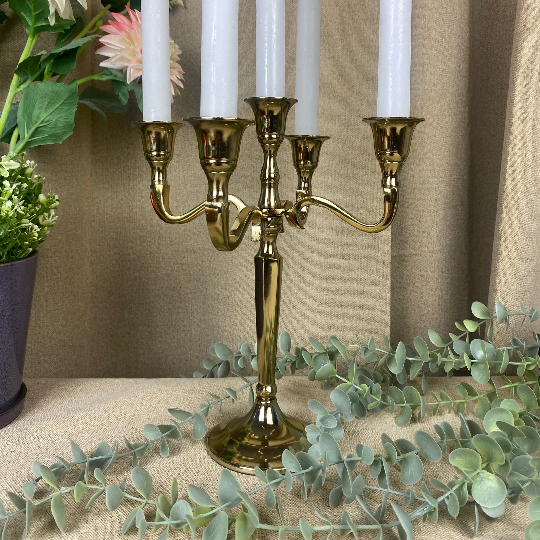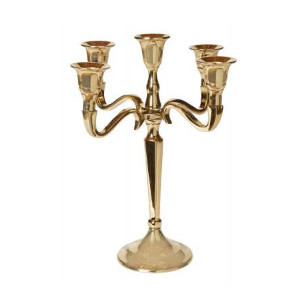 Denne guldfarvede lysestage i aluminium med 5 arme skaber en stilfuld og festlig stemning i ethvert rum. Dens enkle, moderne design passer til både klassiske og moderne indretninger og fungerer perfekt som centerpiece på spisebordet, kommoden eller i stuen. Ideel til hyggelige aftener eller som dekorativ detalje ved særlige lejligheder.
