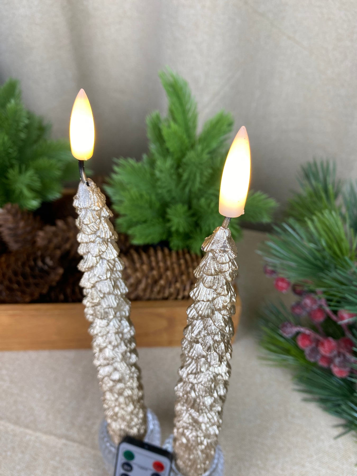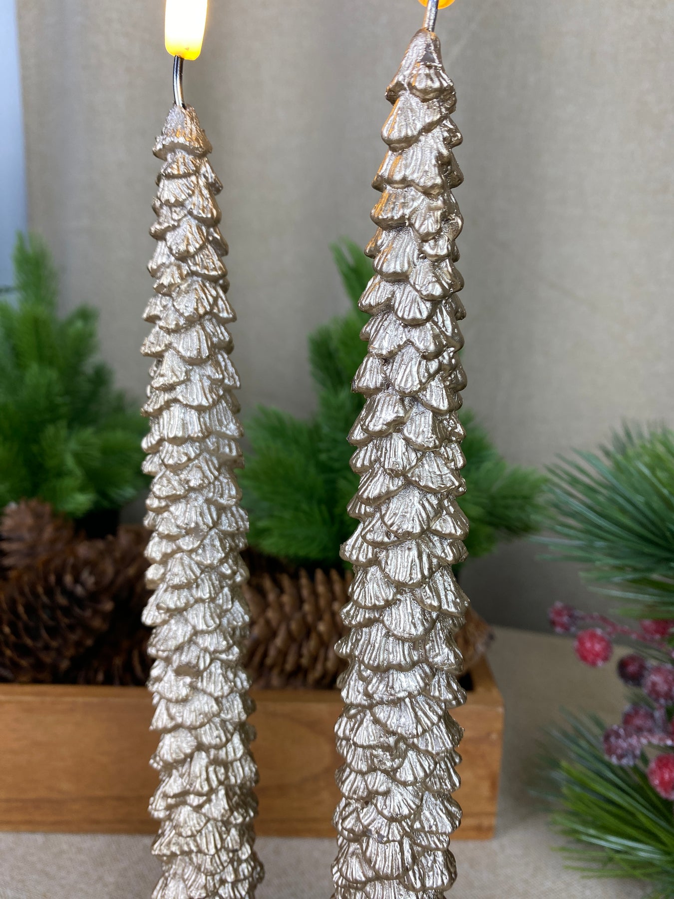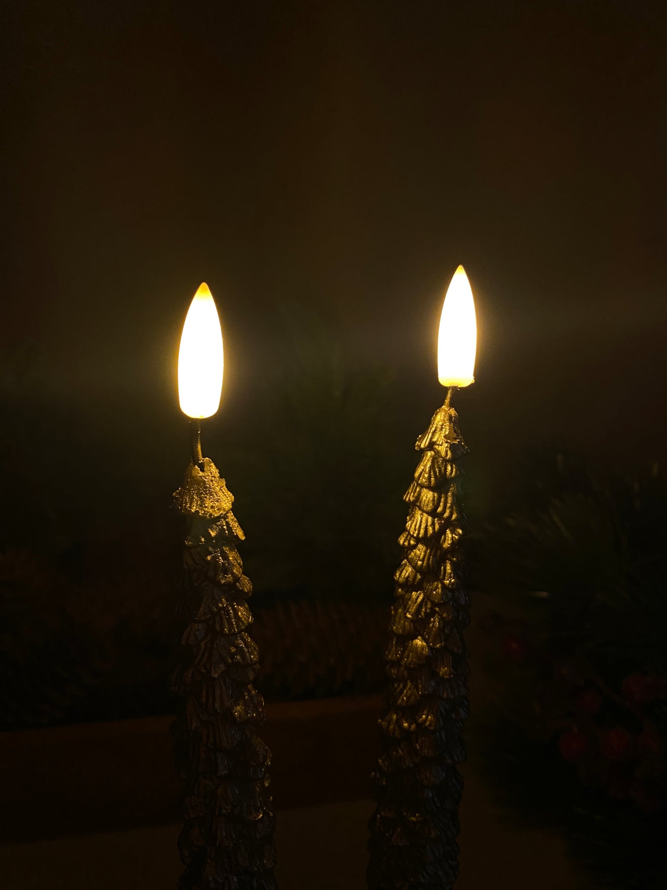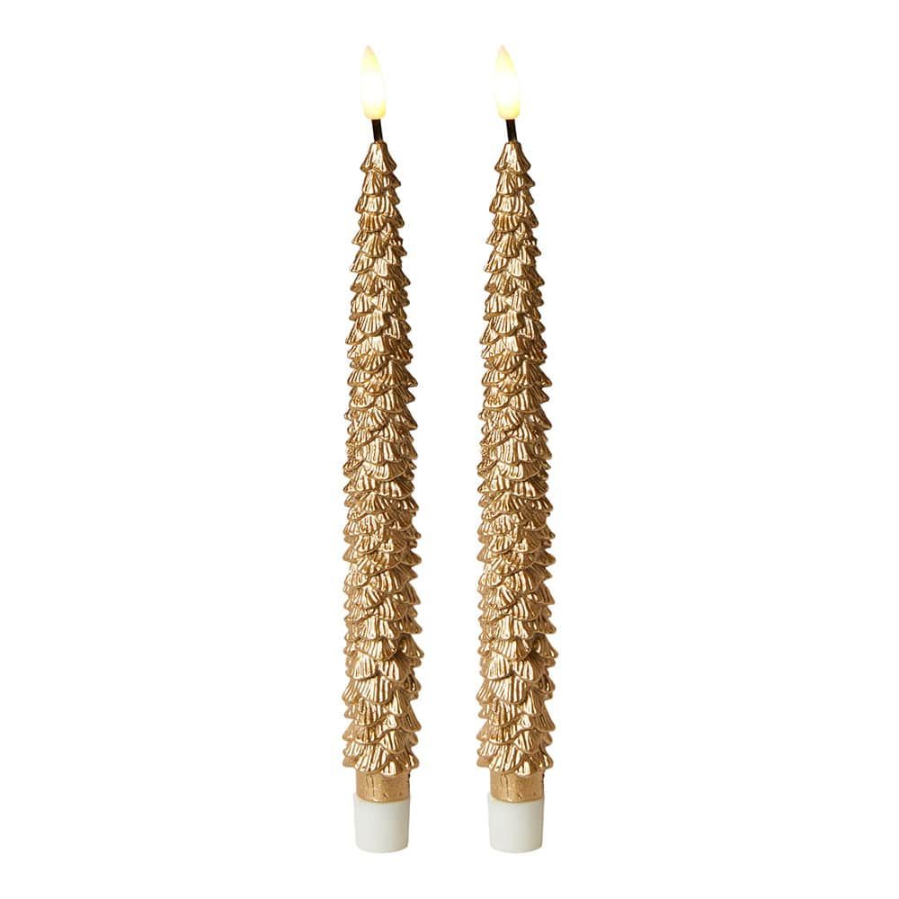 Med LED juletræs-stagelys i guld får du et stilfuldt og tidløst element til din juleudsmykning, der kombinerer ægte julehygge med moderne teknologi og bekvemmelighed.