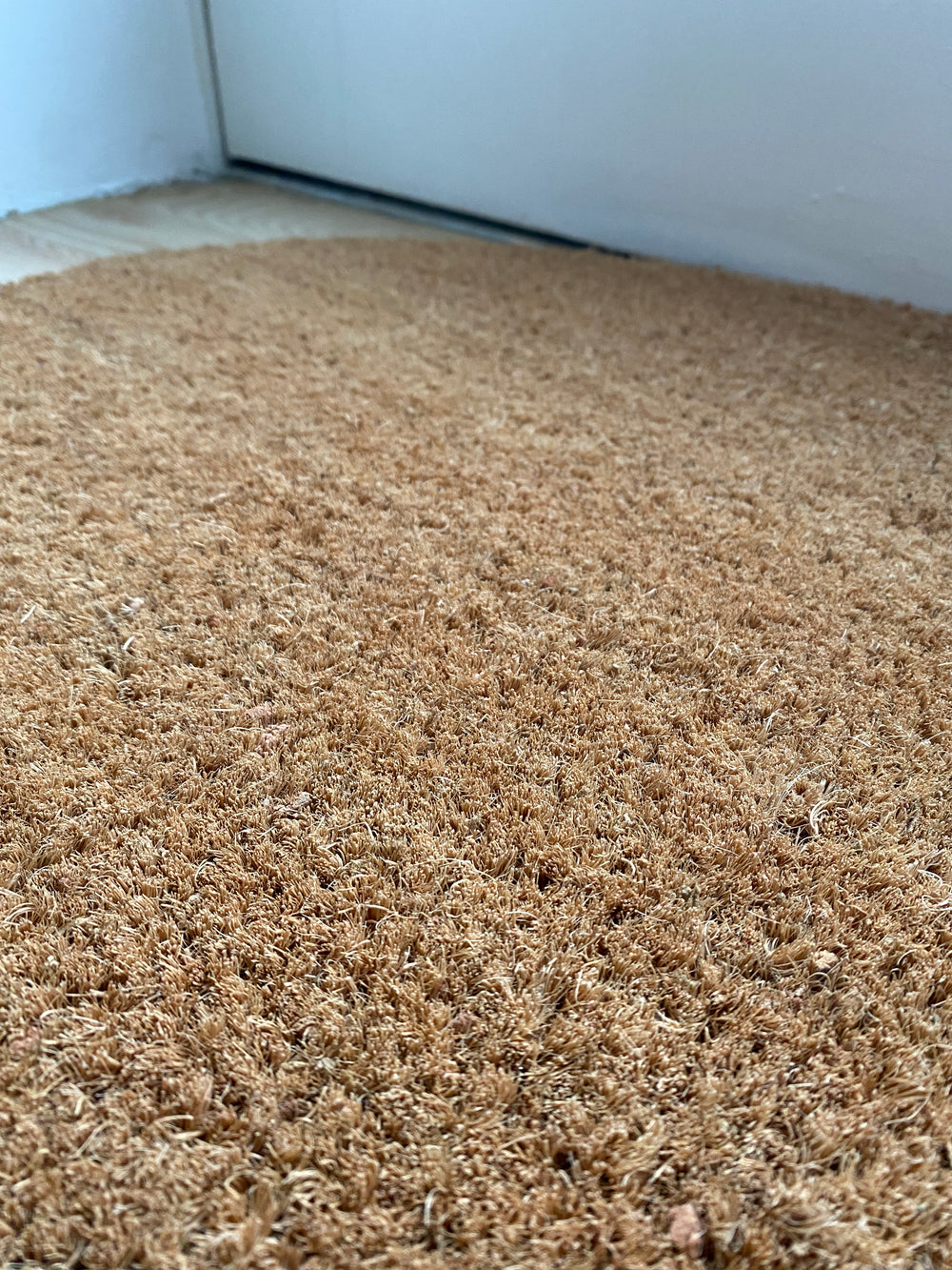 Pæn og slidstærk dørmåtte i et materiale af kokos. Måtten er har en oval form og måler 40 x 60 cm.