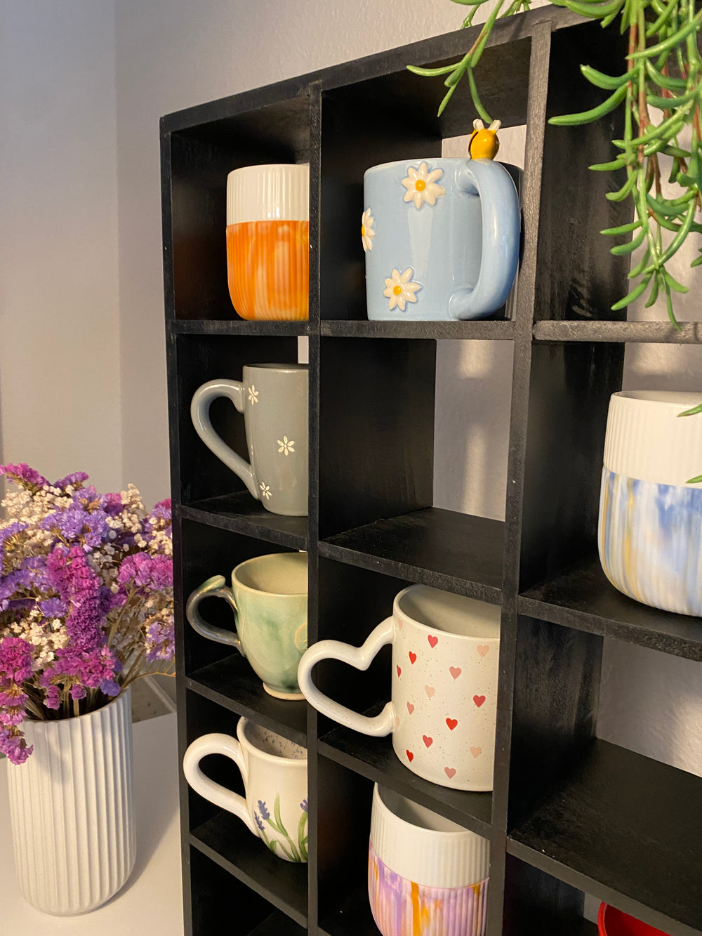 Stilfuld reol til krus i sortlakeret gummitræ – en elegant løsning til at organisere og fremvise dine yndlingskrus, kopper eller små pyntegenstande. Med 15 velplacerede rum får du både orden og overblik, samtidig med at reolen tilfører køkkenet eller stuen et moderne og eksklusivt udtryk.
