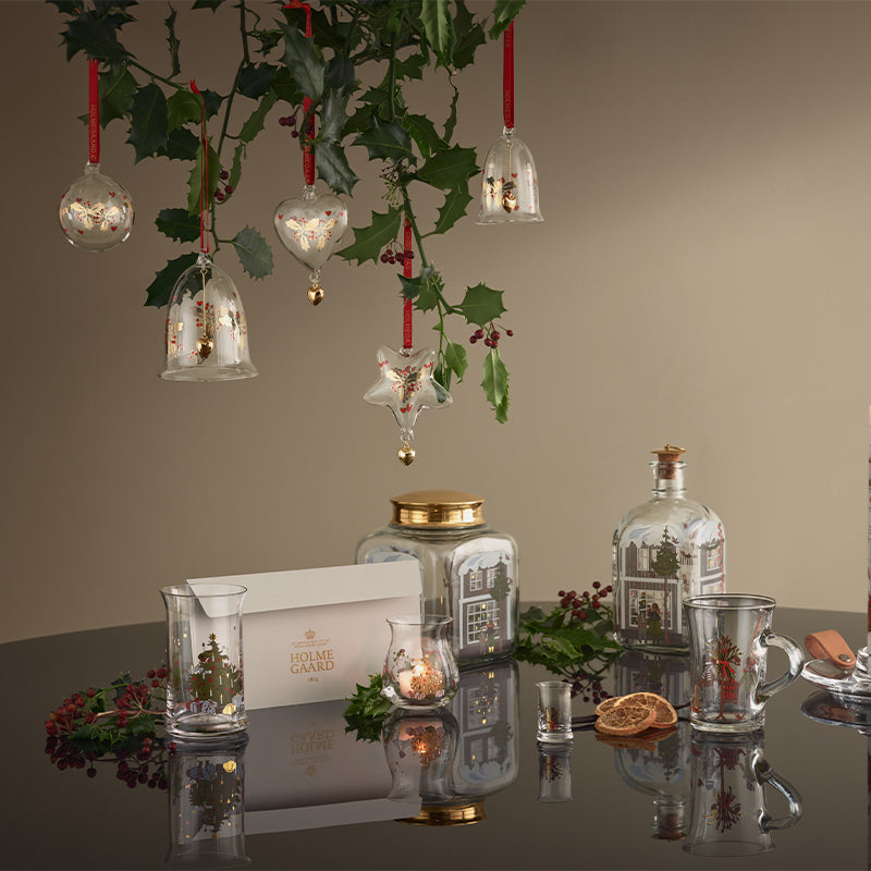 Dansk glaskunst bringer en særlig elegance til julens dekorationer. Fra lysestager til julekugler & pynt skaber det mundblæste glas magiske lysrefleksioner, der giver dybde og karakter til enhver dekoration.
