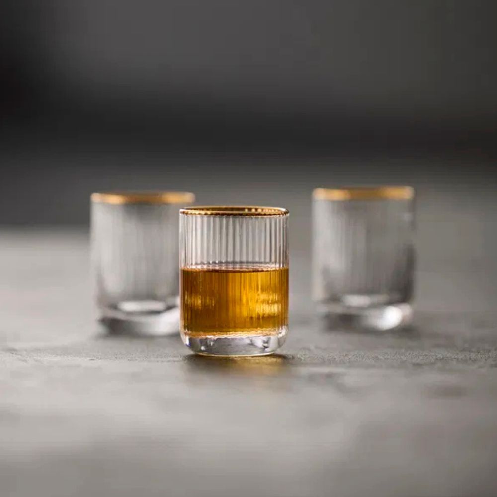 Lyngby Palermo shotsglas Gold er perfekte til servering af små drikke som shots eller likør. Med deres elegante guldkant og mundblæste glas kombinerer de funktionalitet med et eksklusivt look, der passer til både festlige lejligheder og stilfulde borddækninger.