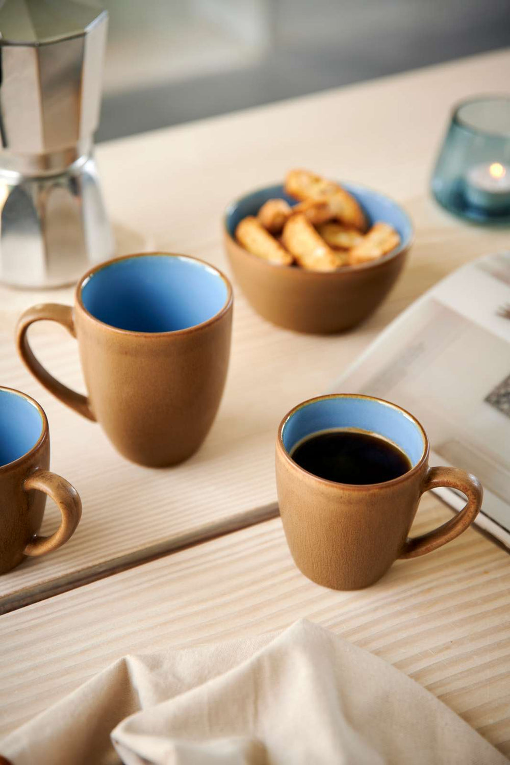 Dette Bitz krus19 cl i den elegante Wood/Ocean farvekombination er perfekt til både varme og kolde drikke. Den fine stentøj konstruktion giver kruset et robust og tidløst udseende, der passer til enhver bordopdækning. Det er ideelt til både hverdagens kaffe eller te og til specielle anledninger. Den håndlavede finish giver hvert krus et unikt præg og tilfører et naturligt, stilrent look til dit hjem.