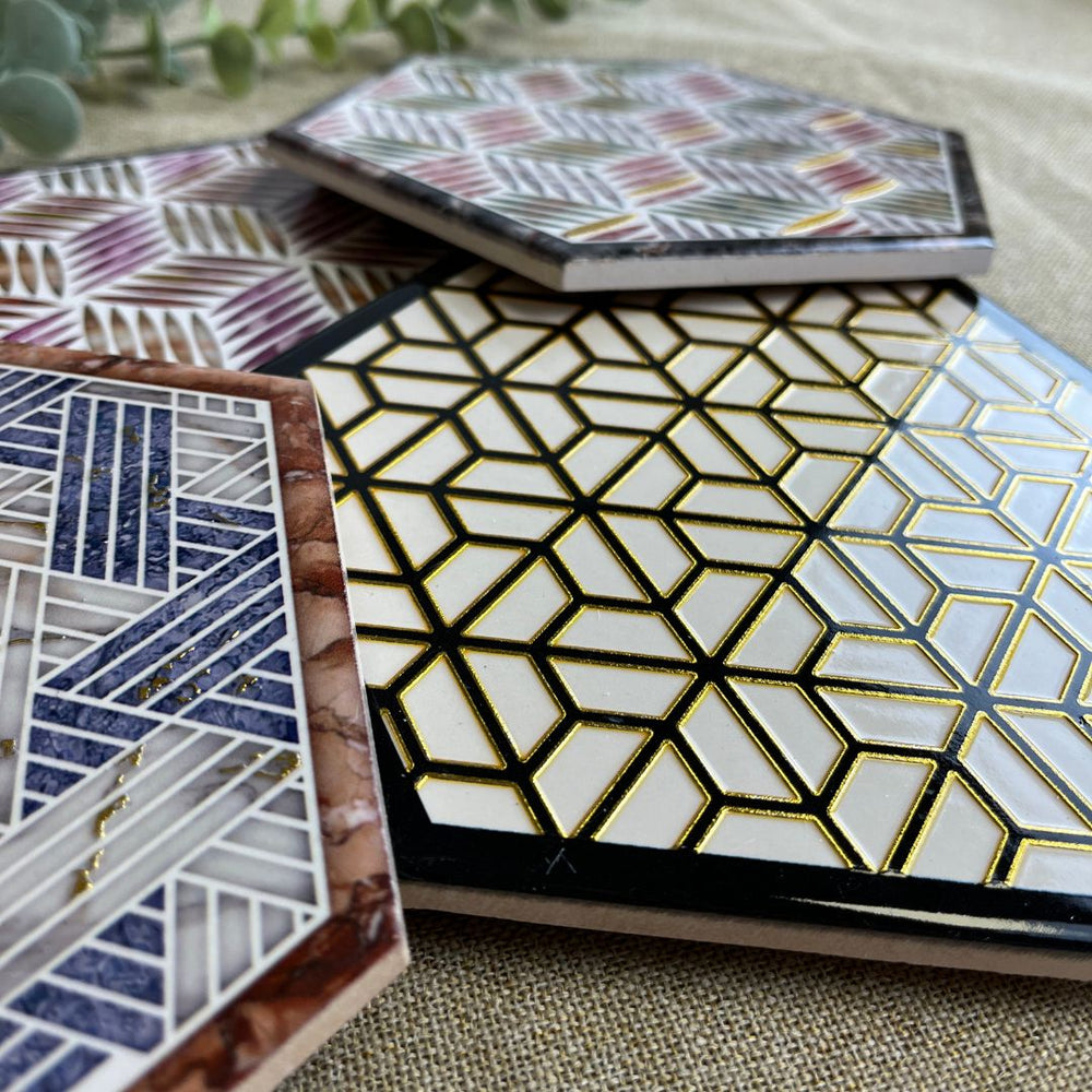 Pynt dit spisebord med disse smukke 6-kantede keramiske bordskånere. Denne elegante og funktionelle tilføjelse til dit køkken eller spisebord er designet til at beskytte dine overflader mod varme gryder, fade og andre varme genstande, samtidig med at den tilføjer et strejf af stil og elegance.
