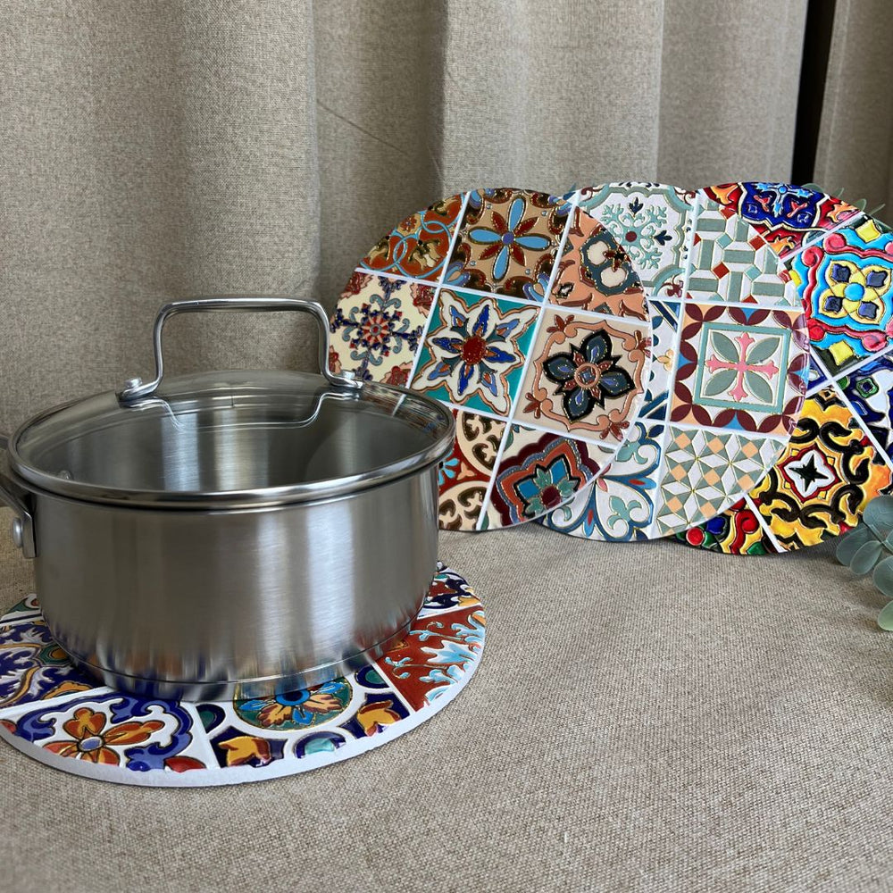Gør din borddækning smuk og praktisk med vores keramiske bordskåner med en diameter på 20 cm. Denne bordskåner er designet til at beskytte dine borde mod varme gryder og fade og tilføjer samtidig et strejf af farve og personlighed til dit spiseområde.