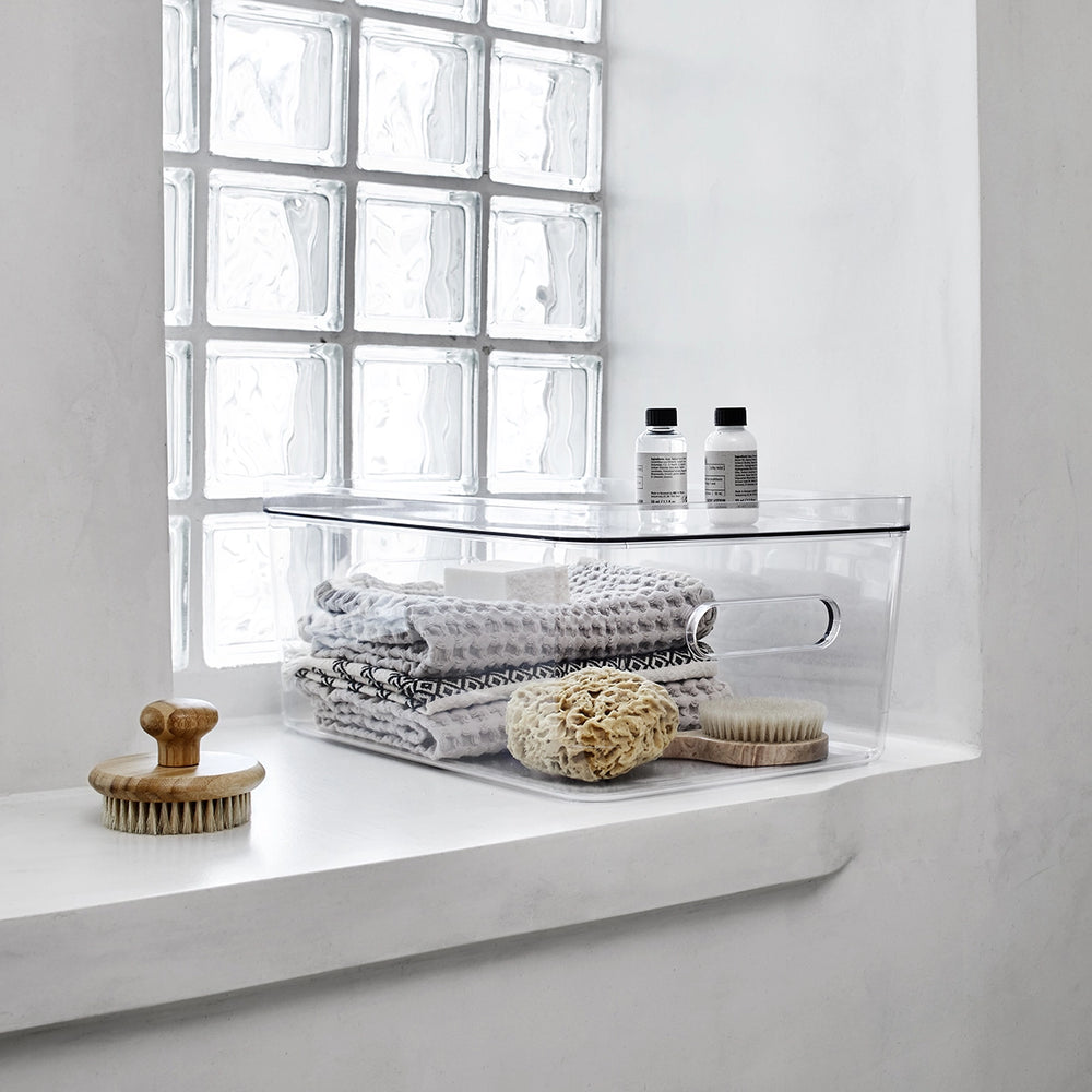 Låget er fremstillet af stærkt og holdbart plastikmateriale, der kan modstå belastninger og beskytte dine ting mod støv og fugt. Det er også gennemsigtigt, så du nemt kan se indholdet i kassen uden at skulle åbne den.