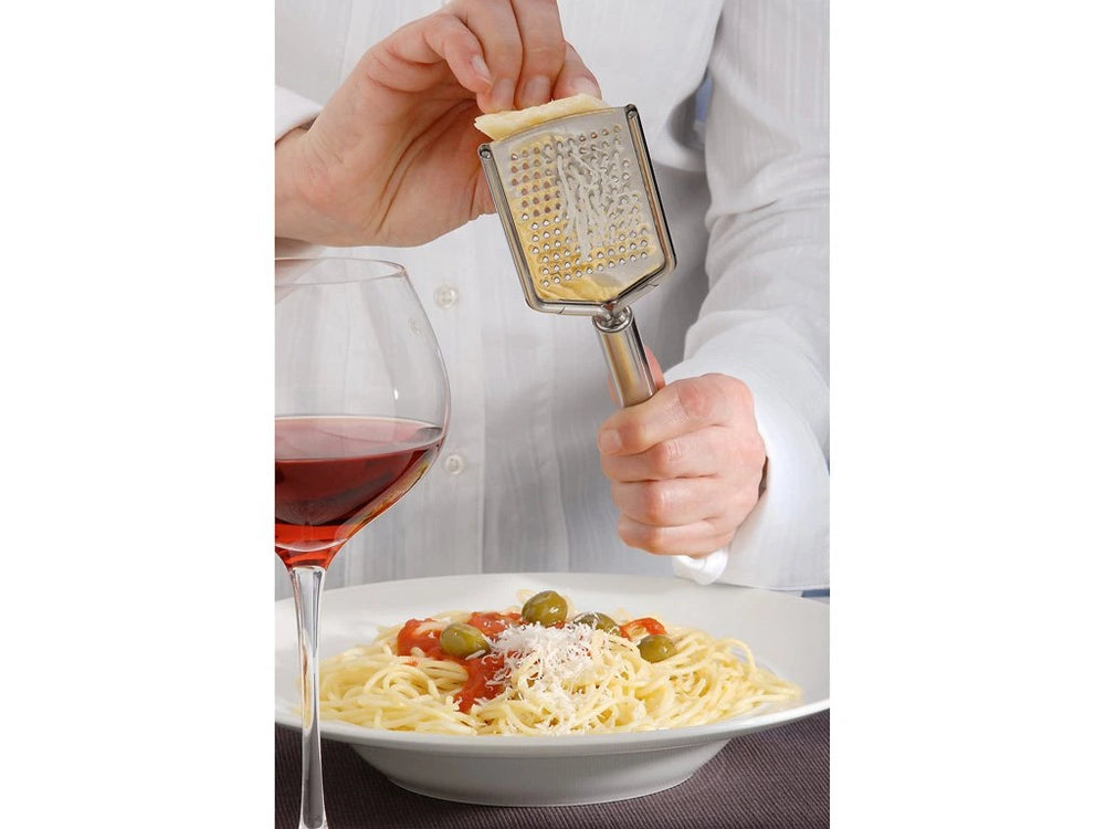 Det ergonomiske håndtag ligger behageligt i hånden og giver dig optimal kontrol under brug, så du kan rive uden anstrengelse. Fremstillet af Cromargan®, WMFs ikoniske rustfri stål, er rivejernet ikke kun yderst robust og modstandsdygtigt over for rust, men også elegant og tidløst i design.