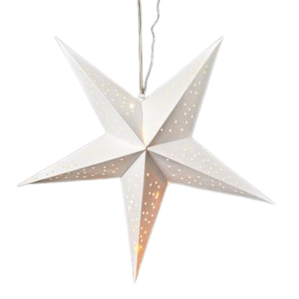 Papirstjerne 60 cm med 10 LED batteriboks hvid