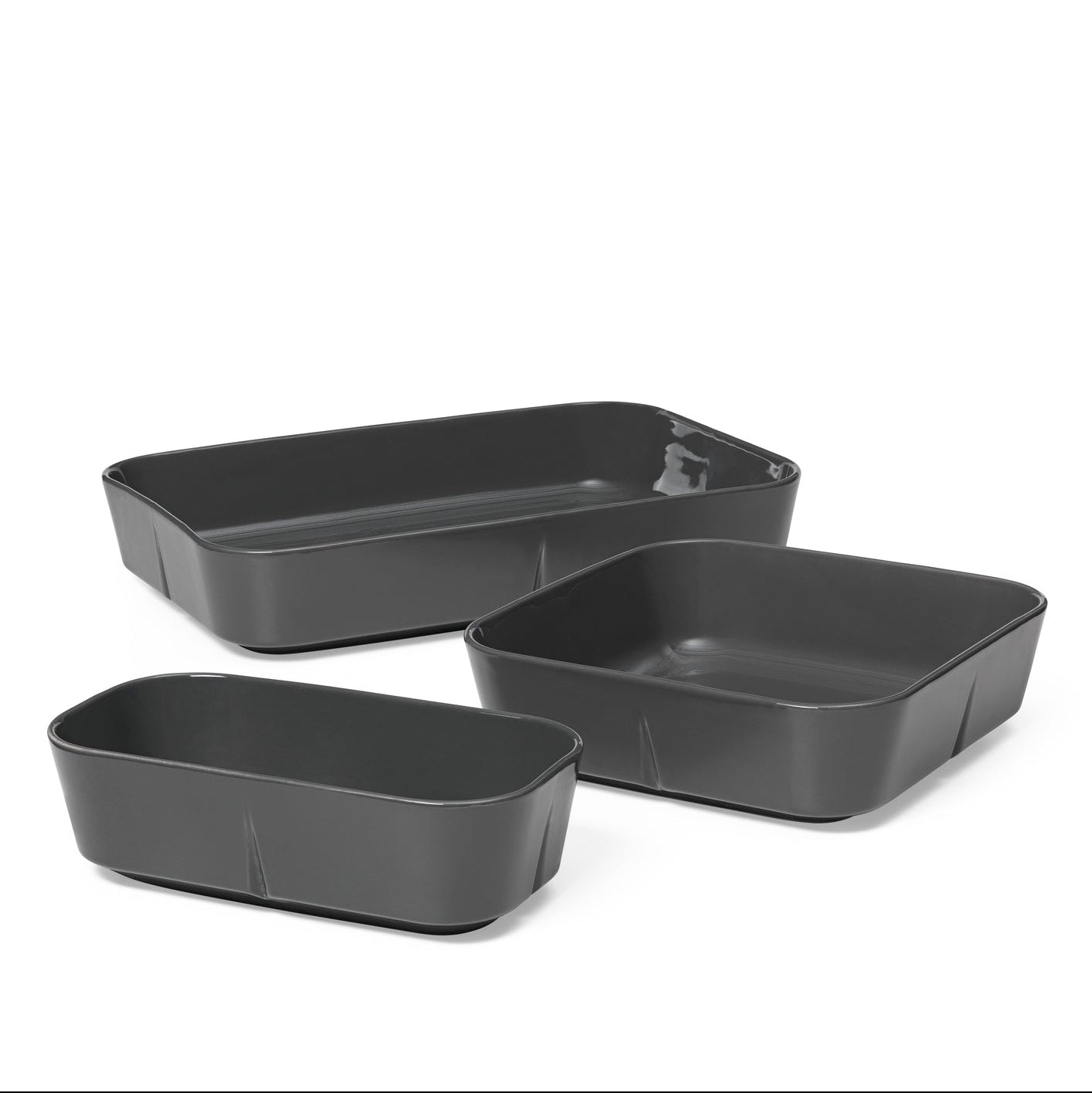 Rosendahl Grand Cru ovnfaste fade i grå leveres som et sæt med tre størrelser, perfekt til bagning og servering. Det tidløse design med de karakteristiske rillet mønstre passer smukt til både hverdag og fest. Fade i keramik sikrer jævn varmefordeling, og deres robuste kvalitet gør dem velegnede til ovn, mikroovn og opvaskemaskine, hvilket gør madlavning og rengøring både praktisk og stilfuld.