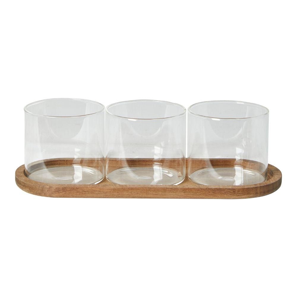 Serveringssæt - Fad med 3 skåle glas/akacie