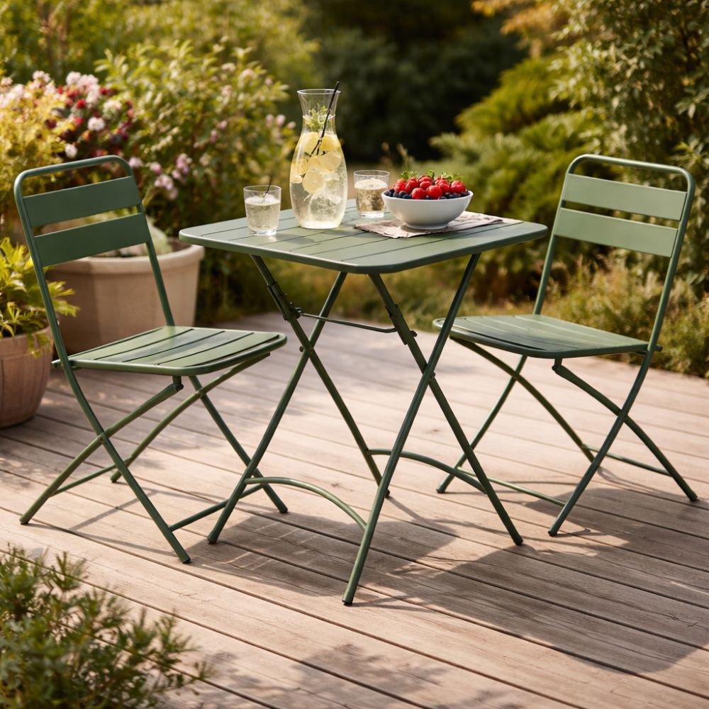 Cafesæt - 1 bord 2 stole i natur akacietræ