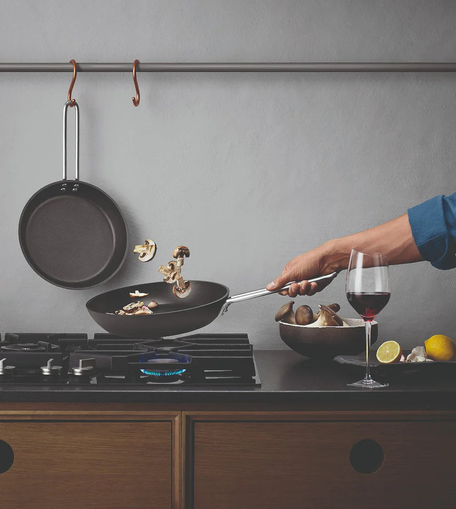 Eva Solo - Prof. stegepande Ø 20 cm RS har også en innovativ håndtagsteknologi, der gør det muligt at placere panden i ovnen uden risiko for beskadigelse af håndtaget. Stegepanden kan bruges på alle varmekilder inklusiv induktion og er ovnfast op til 260 grader Celsius.
