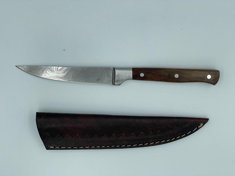 Gobar steakkniv i Damaskus stål med håndtag i valnøddetræ.