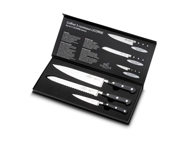 Lion Sabatier - Licorne Knivsæt 3 Dele Stål/ Sort