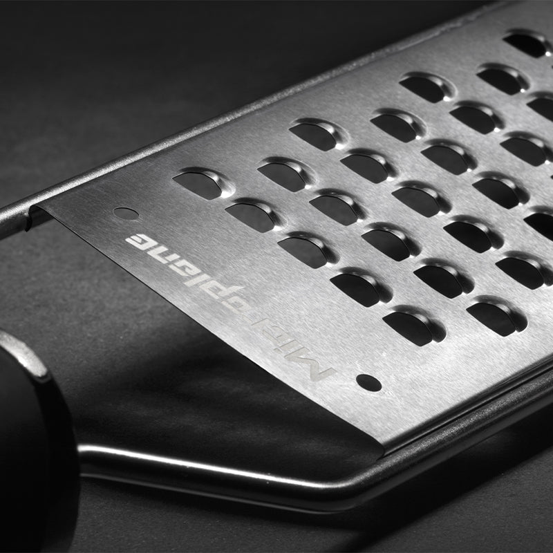 Microplane's Gourmet Rivejern i ekstra grov udgave er en uundværlig del af køkkenudstyret for enhver, der værdsætter kvalitetsredskaber, som kombinerer funktionalitet og stilfuldt design.