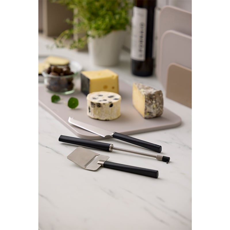 orkæl dig selv og dine gæster med en stilfuld og funktionel oplevelse ved ostebordet med Rosti Emma Ostesæt i sort. Dette elegante sæt består af tre essentielle osteknive, der gør servering og nydelse af ost til en sand fornøjelse.