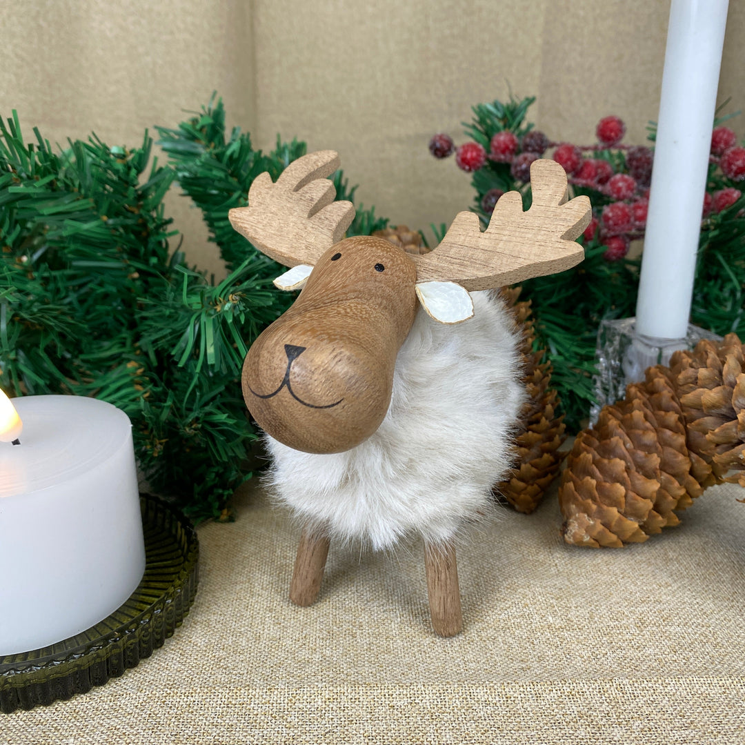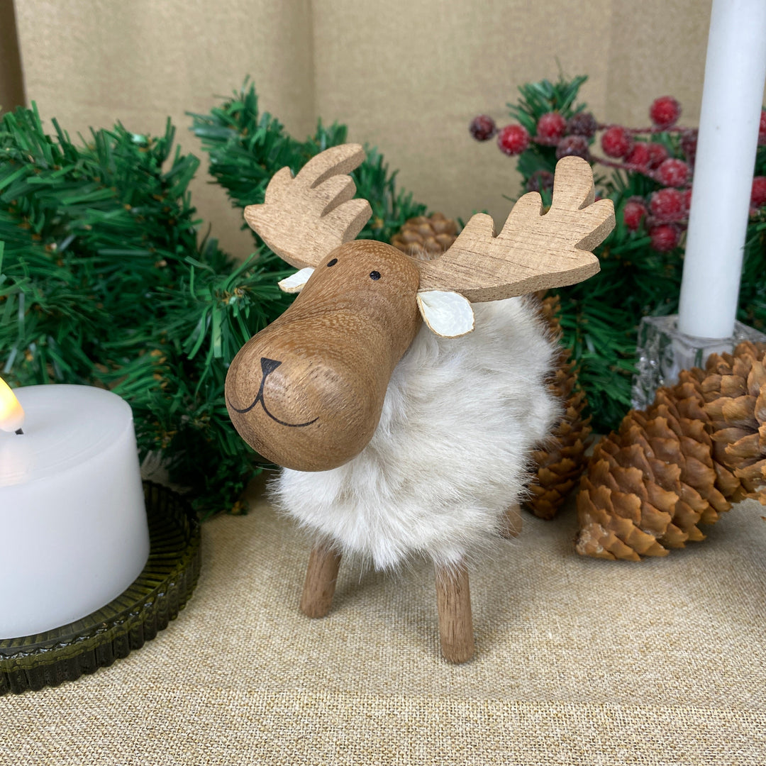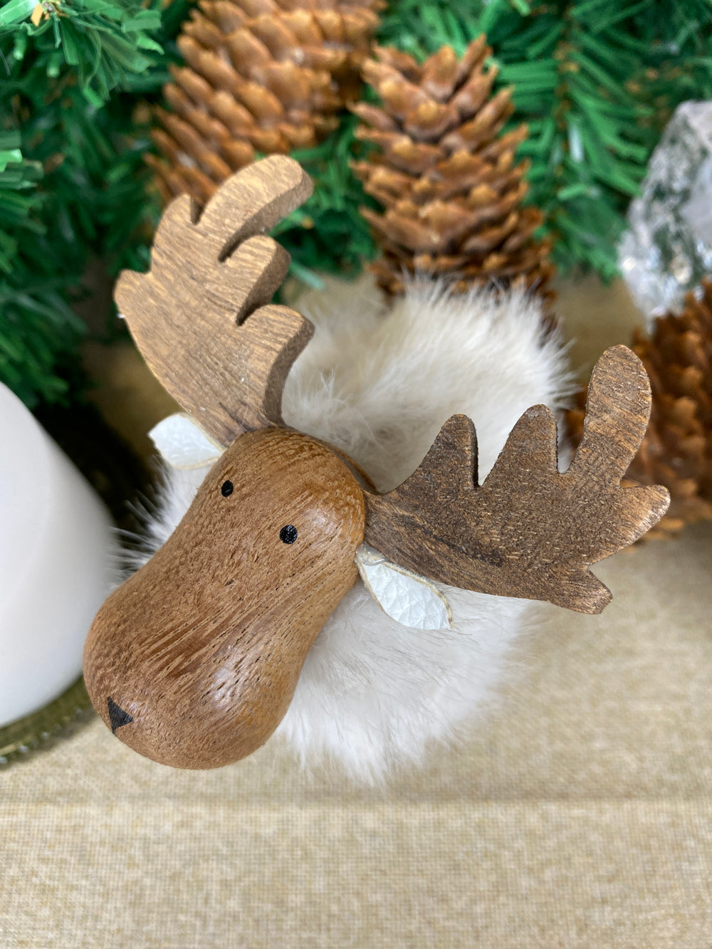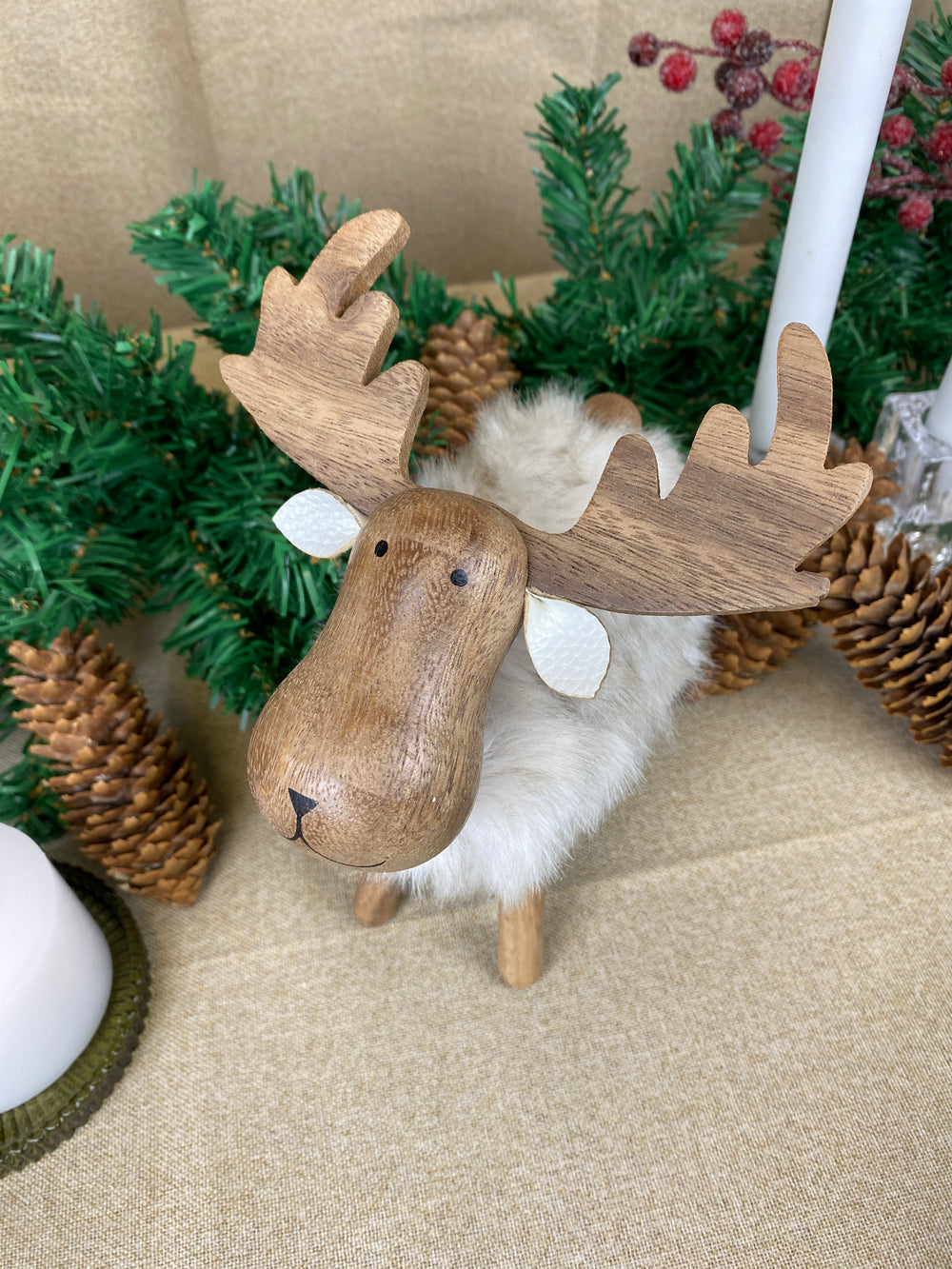 Elg med pels 10x12x13 cm mix træ/polyester brun