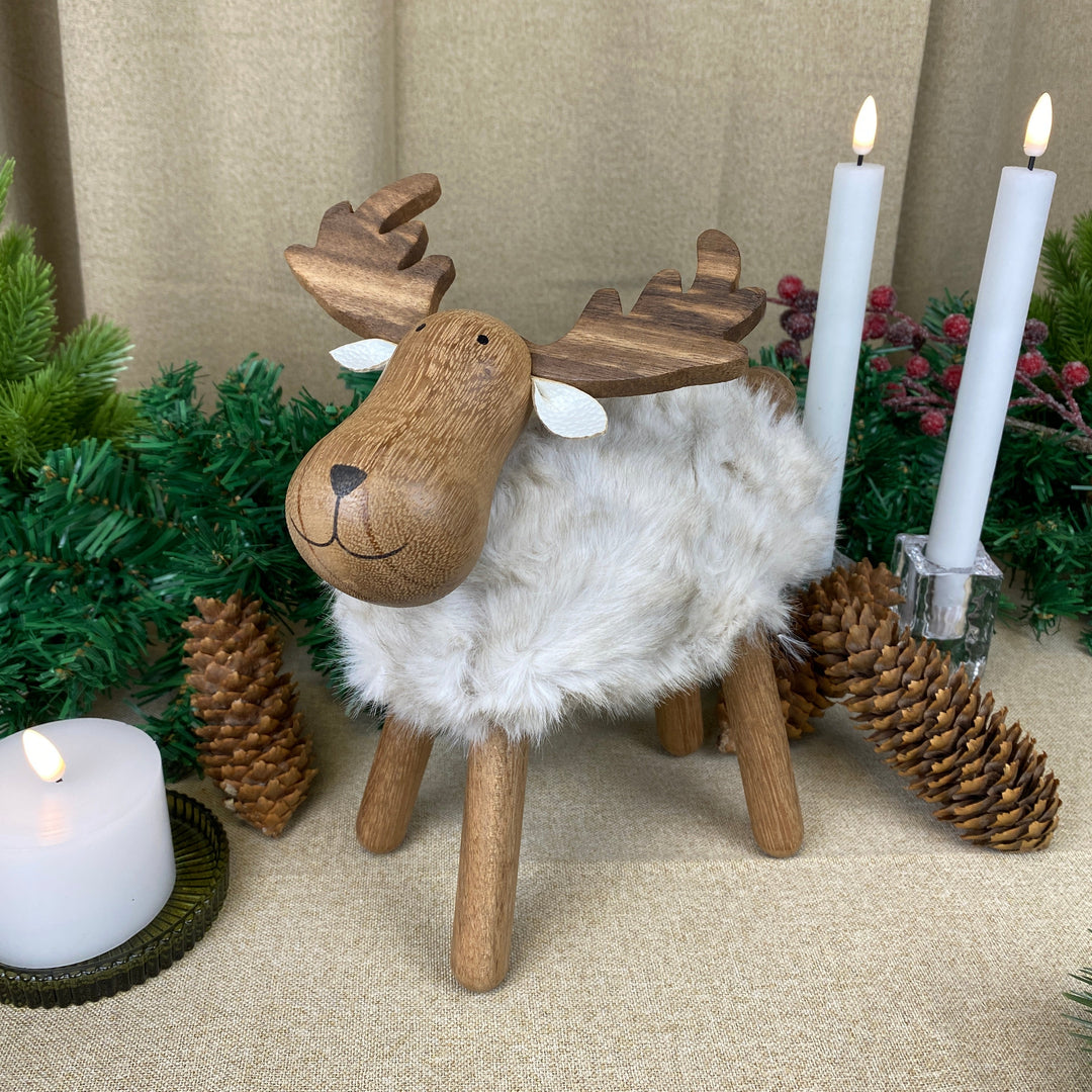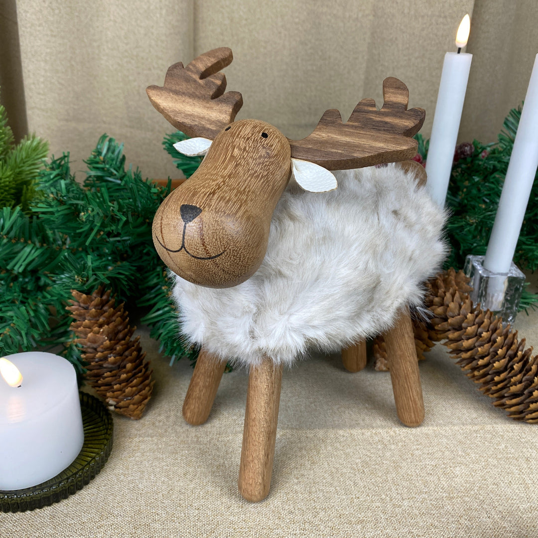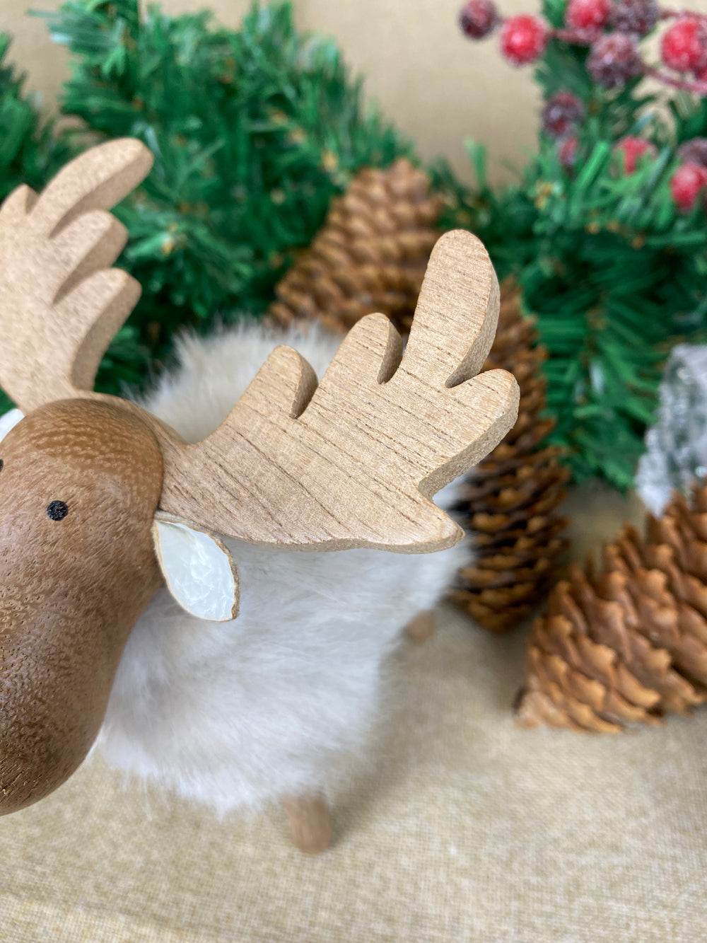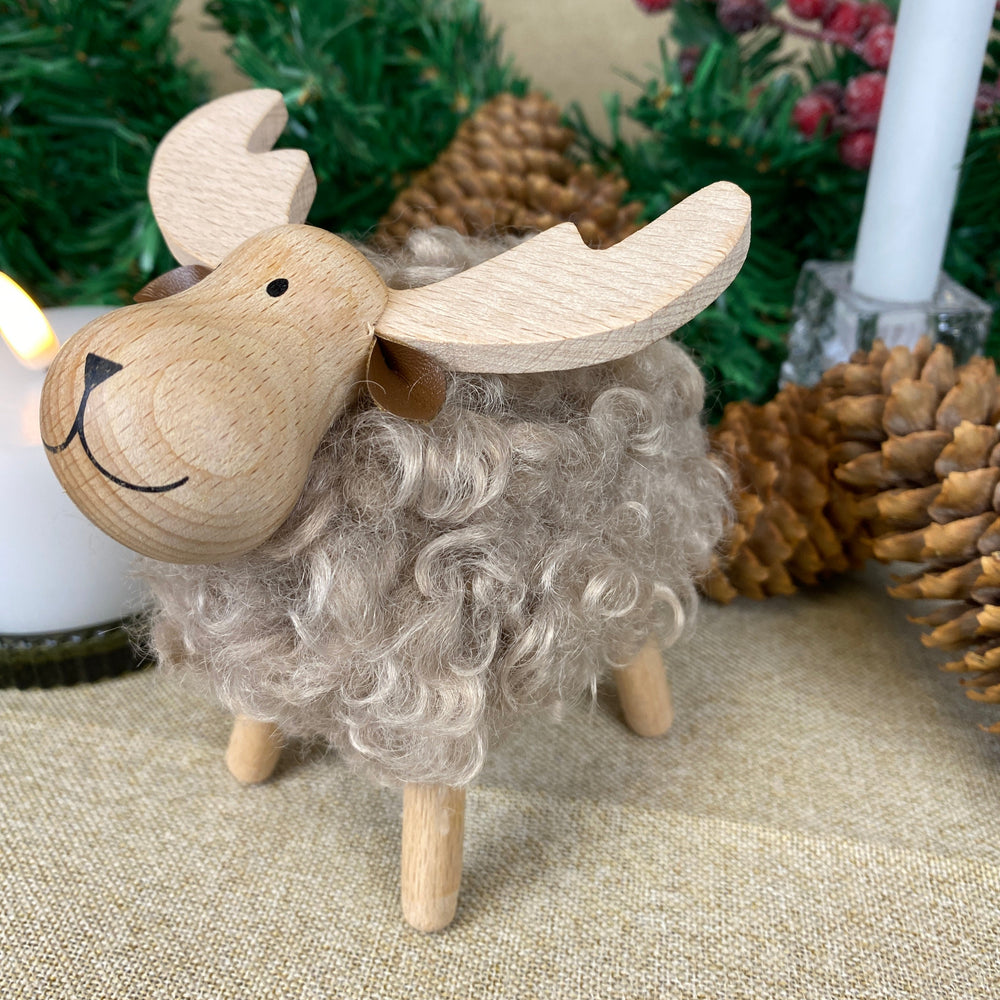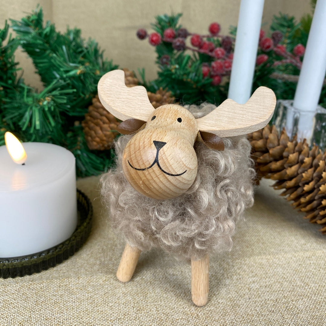 Elg med pels 10x12x13 cm mix træ/polyester brun