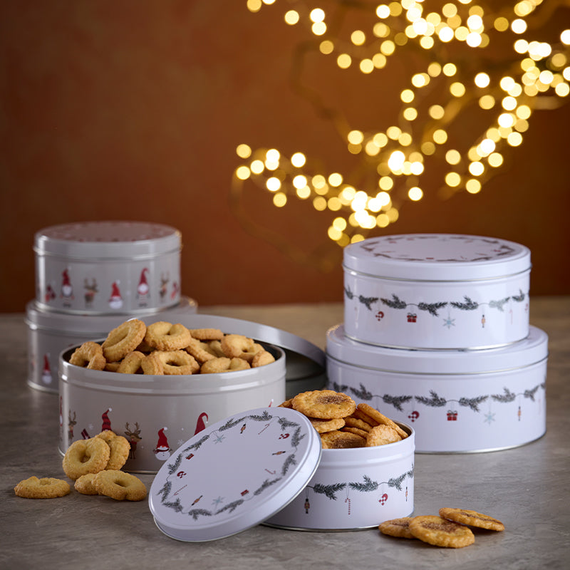 Kagedåsesæt med 3 stk. i assorterede hvid/grå farver er den perfekte løsning til opbevaring af dine hjemmebagte småkager. Dette sæt med kagedåser er både praktisk og stilfuldt.
