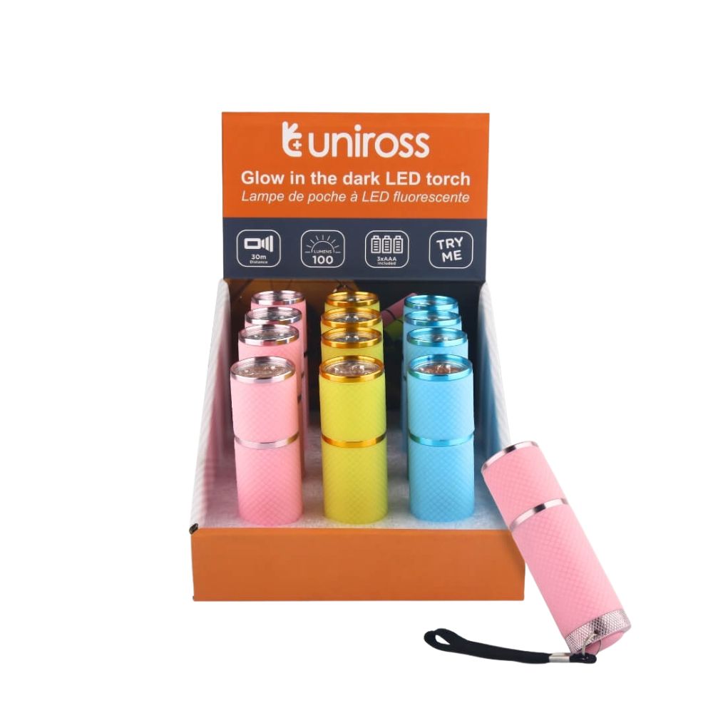 Uniross - Lommelygte 1 stk. 9 LED inkl. batterier - ass. farver