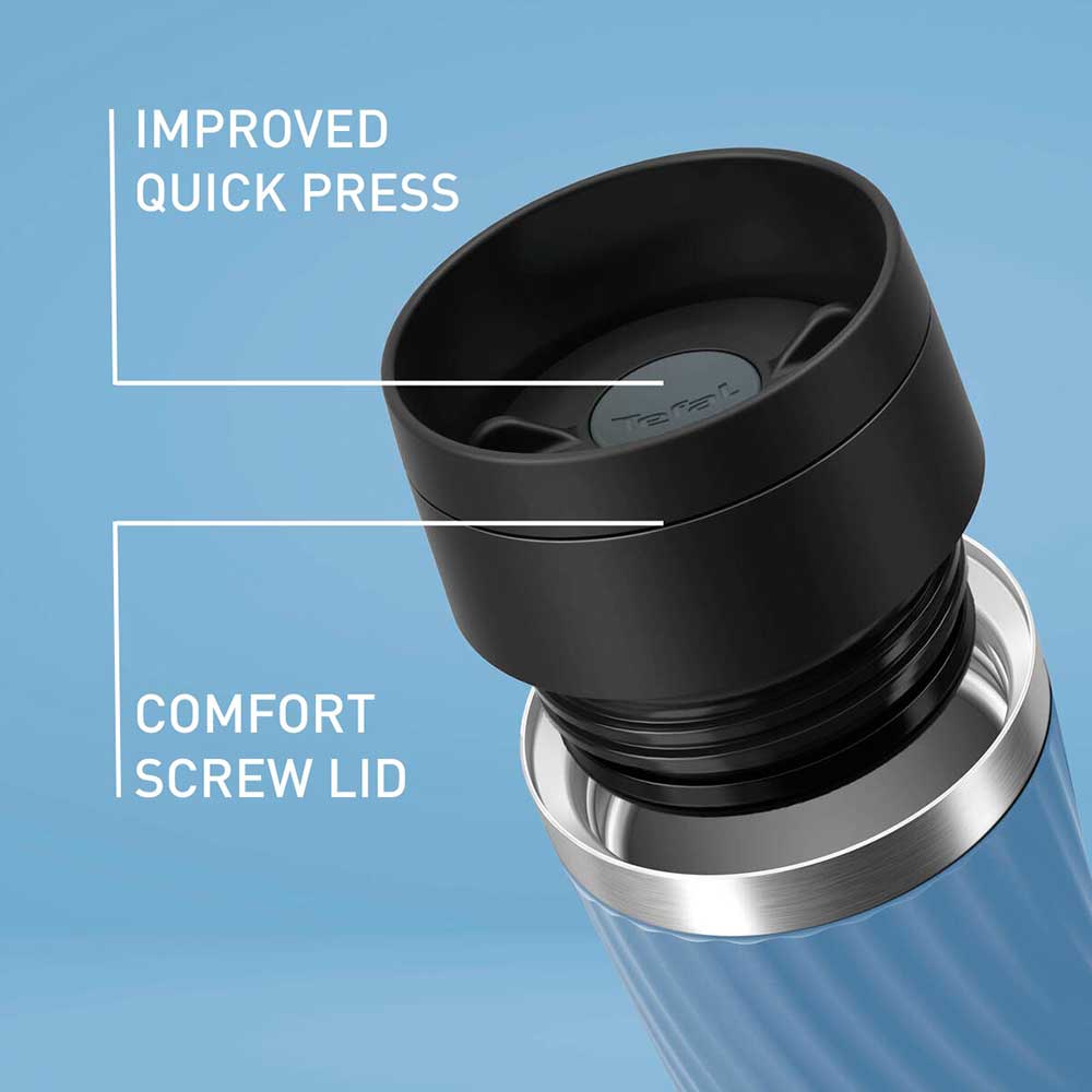 Denna termosmugg från Tefal är av högsta kvalitet! Med sin snygga design kan den hålla dina drycker kalla i upp till 8 timmar och varma i upp till 4. Denna termosmugg är därför inte bara för vintersäsongen, utan kan användas året runt. Du kan dricka ur den från alla håll. Termomuggen är 100% läckagesäker, så den läcker inte om du lämnar den liggande, och den kan maskindiskas.