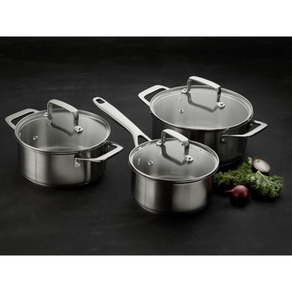 Gryderne er fremstillet i rustfrit stål med en solid sandwichbund på 4,5 mm, der sikrer en jævn og effektiv varmefordeling. Det betyder, at dine retter tilberedes ensartet – uanset om du laver saucer, supper eller større måltider.