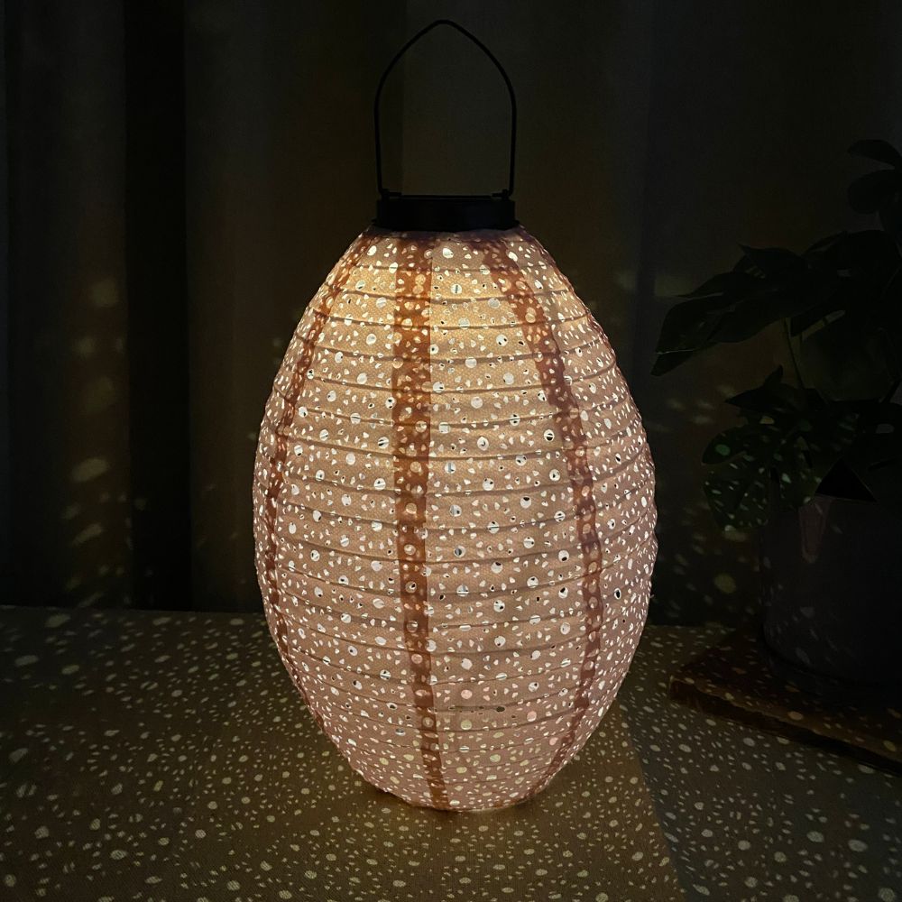 Solcellslykta - Ø22 × 32 cm - rosa är en dekorativ utomhuslampa som skapar mysig och stämningsfull belysning i trädgården, på terrassen eller balkongen.