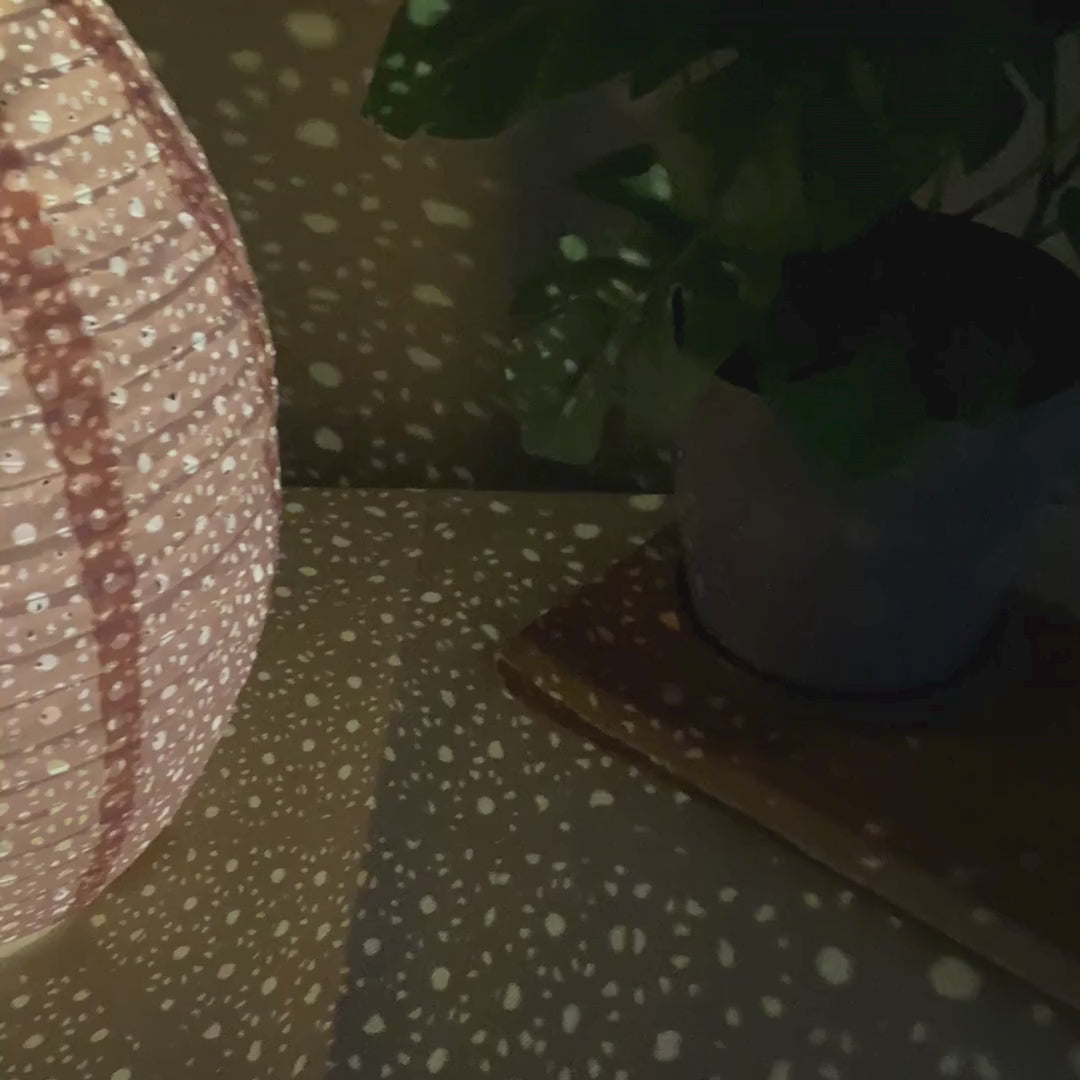 Lyktan har ett dekorativt mönster som skapar ett vackert ljusspel när lampan är tänd, och sprider ett mjukt och behagligt ljus runt den. Den rosa färgen ger en elegant och mysig look till utomhusinredningen.