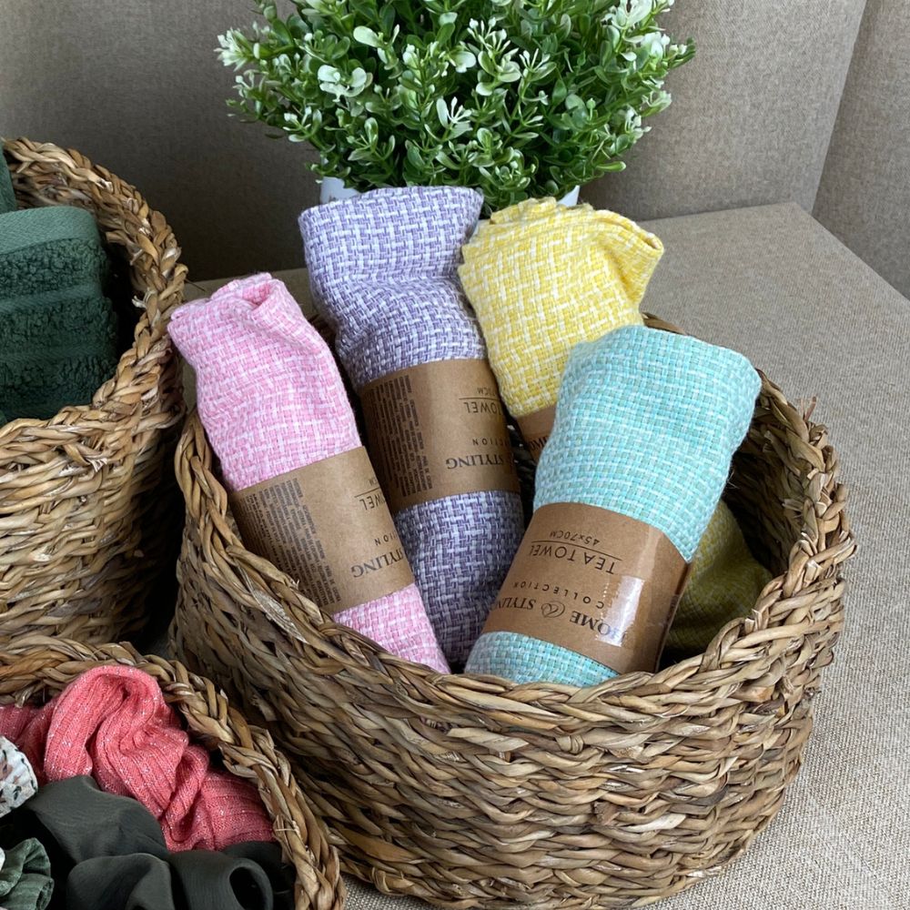 Kökshandduken finns i blandade färger, vilket kan ge köket ett fräscht och färggrant uttryck. De finns i gul, grön, blå, lila och rosa.