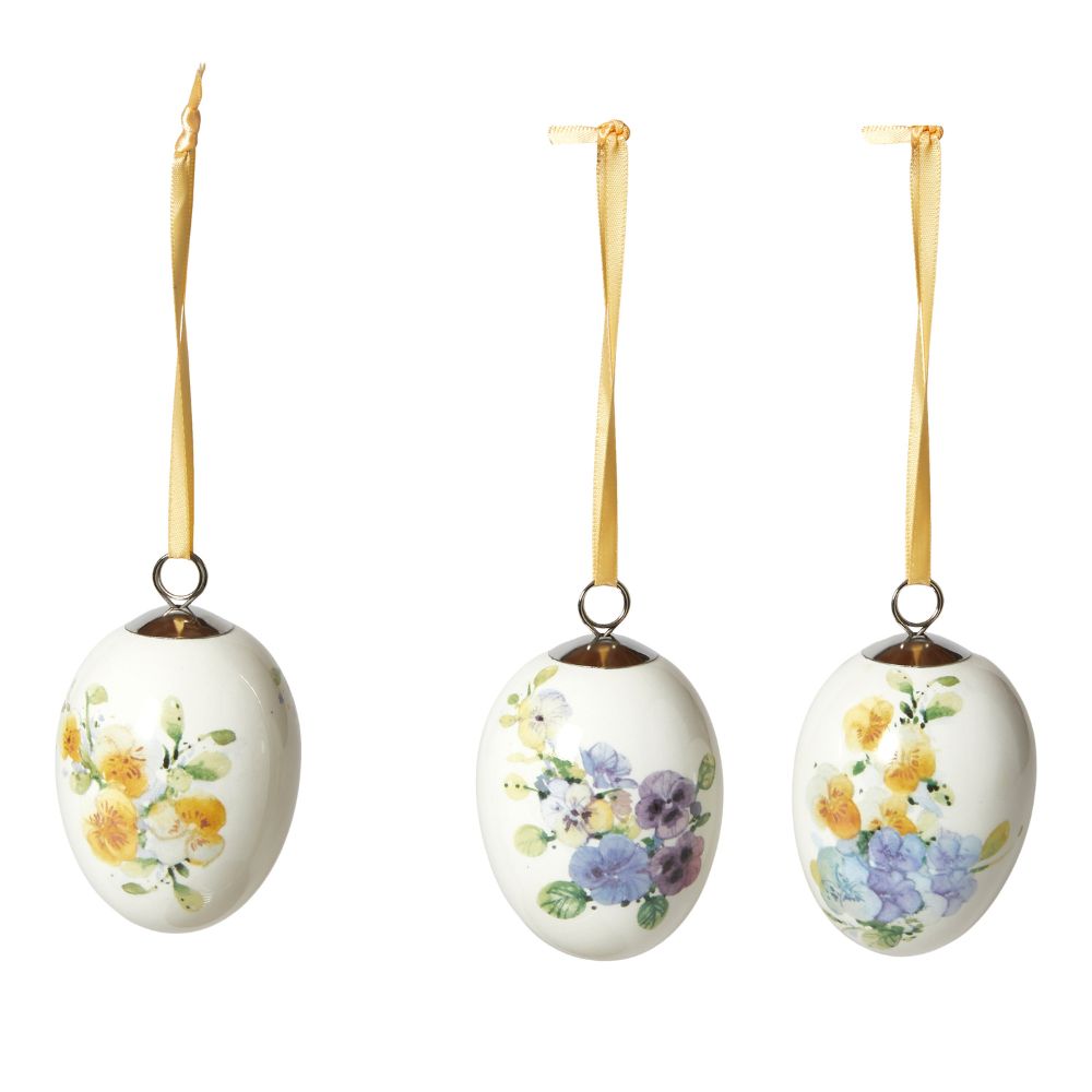 Dekorations æg til ophæng 1 stk. - ass. design stedmoderblomster
